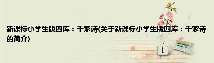 大家好,新课标小学生版四库:千家诗,关于新课标小学生版四库:千家诗的简介很多人还不知道,现在让我们一起来看看吧!
