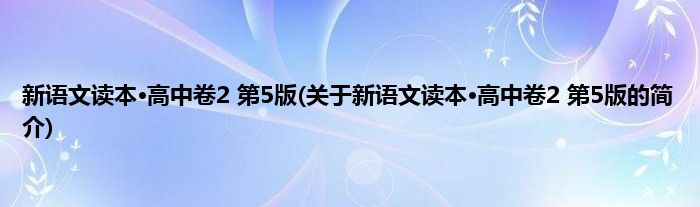 本文关于新语文读本·高中卷2 第5版的简介就讲解完毕,希望对大家有所帮助。