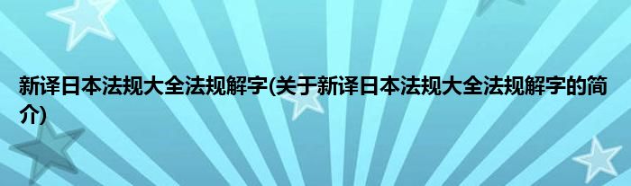 本文关于新译日本法规大全法规解字的简介就讲解完毕,希望对大家有所帮助。