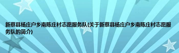 新蔡县杨庄户乡南陈庄村志愿服务队(关于新蔡县杨庄户乡南陈庄村志愿服务队的简介)