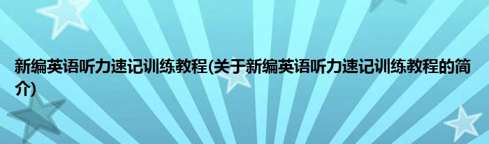 新编英语听力速记训练教程(关于新编英语听力速记训练教程的简介)