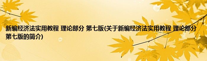 本文关于新编经济法实用教程 理论部分 第七版的简介就讲解完毕,希望对大家有所帮助。