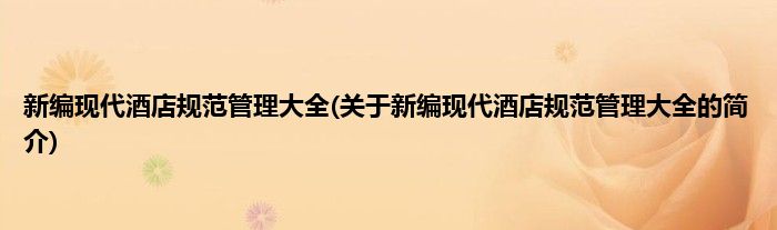 本文关于新编现代酒店规范管理大全的简介就讲解完毕,希望对大家有所帮助。