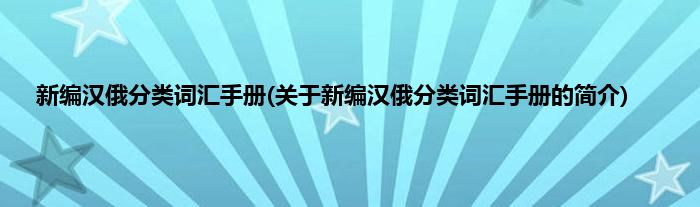 本文关于新编汉俄分类词汇手册的简介就讲解完毕,希望对大家有所帮助。