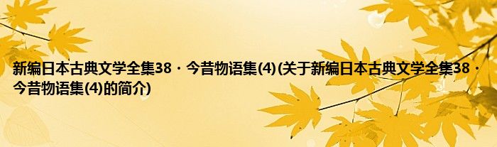 本文关于新编日本古典文学全集38・今昔物语集(4)的简介就讲解完毕,希望对大家有所帮助。