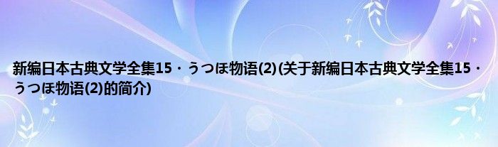 本文关于新编日本古典文学全集15・うつほ物语(2)的简介就讲解完毕,希望对大家有所帮助。
