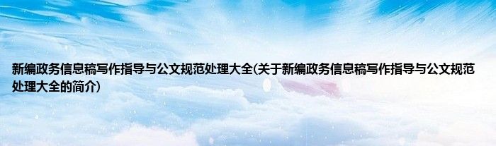 本文关于新编政务信息稿写作指导与公文规范处理大全的简介就讲解完毕,希望对大家有所帮助。
