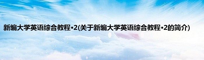 大家好,新编大学英语综合教程·2,关于新编大学英语综合教程·2的简介很多人还不知道,现在让我们一起来看看吧!