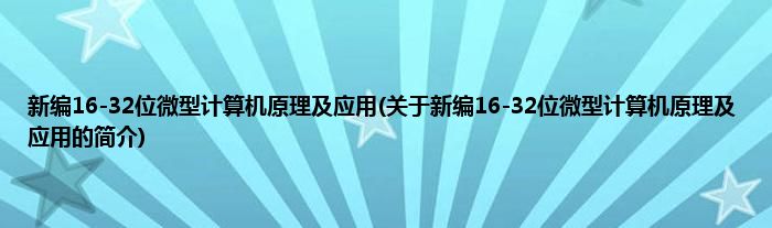 本文关于新编16-32位微型计算机原理及应用的简介就讲解完毕,希望对大家有所帮助。