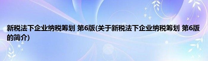 大家好,新税法下企业纳税筹划 第6版,关于新税法下企业纳税筹划 第6版的简介很多人还不知道,现在让我们一起来看看吧!