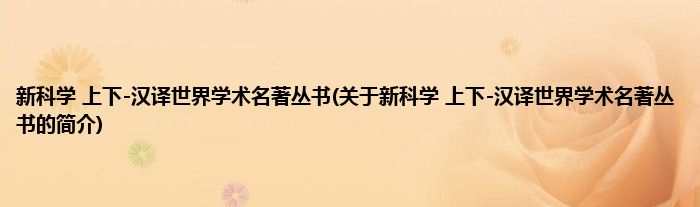 本文关于新科学 上下-汉译世界学术名著丛书的简介就讲解完毕,希望对大家有所帮助。