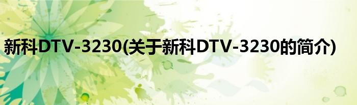 大家好,新科DTV-3230,关于新科DTV-3230的简介很多人还不知道,现在让我们一起来看看吧!