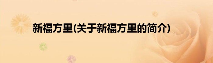大家好,新福方里,关于新福方里的简介很多人还不知道,现在让我们一起来看看吧!