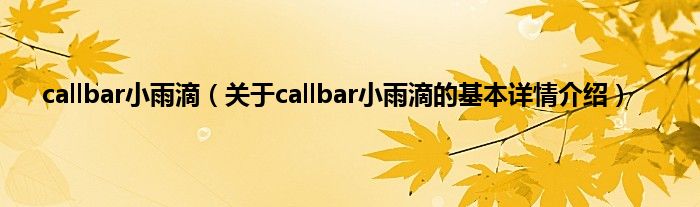 本文关于callbar小雨滴的基本详情介绍就讲解完毕,希望对大家有所帮助。