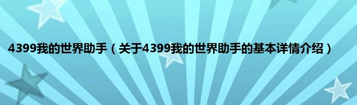 本文关于4399我的世界助手的基本详情介绍就讲解完毕,希望对大家有所帮助。