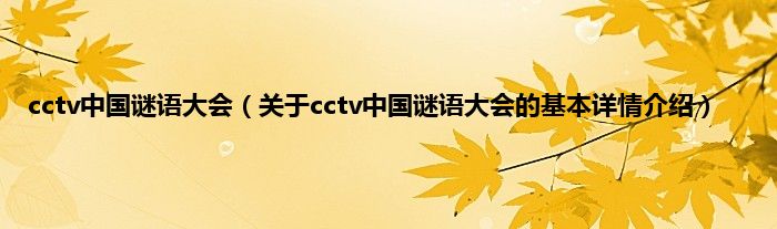 本文关于cctv中国谜语大会的基本详情介绍就讲解完毕,希望对大家有所帮助。