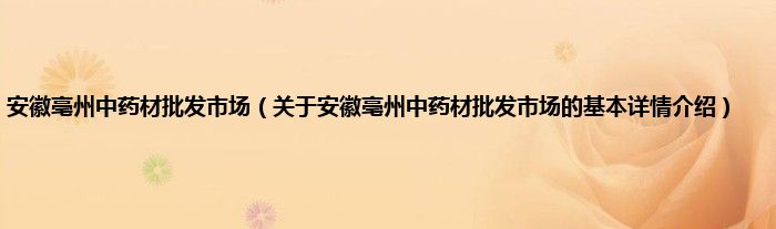 本文关于安徽亳州中药材批发市场的基本详情介绍就讲解完毕,希望对大家有所帮助。