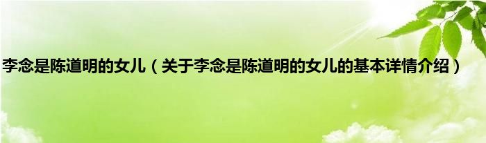 李念是陈道明的女儿(关于李念是陈道明的女儿的基本详情介绍)