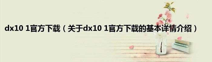 本文关于dx10 1官方下载的基本详情介绍就讲解完毕,希望对大家有所帮助。