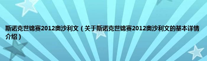 本文关于斯诺克世锦赛2012奥沙利文的基本详情介绍就讲解完毕,希望对大家有所帮助。