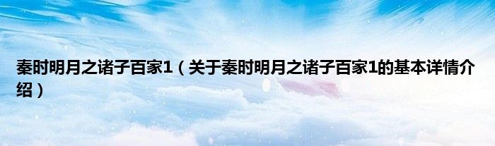 本文关于秦时明月之诸子百家1的基本详情介绍就讲解完毕,希望对大家有所帮助。