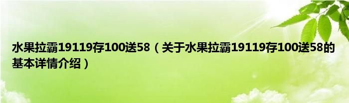 本文关于水果拉霸19119存100送58的基本详情介绍就讲解完毕,希望对大家有所帮助。