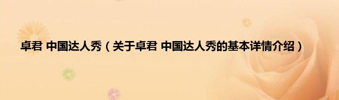 本文关于卓君 中国达人秀的基本详情介绍就讲解完毕,希望对大家有所帮助。