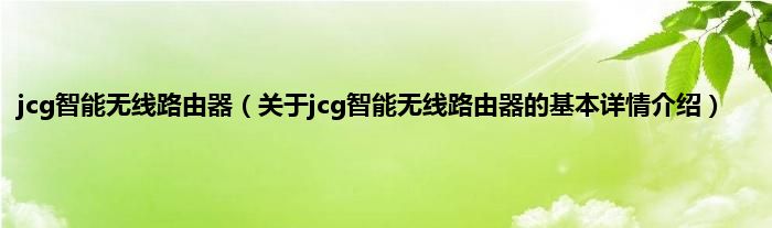 jcg智能无线路由器(关于jcg智能无线路由器的基本详情介绍)