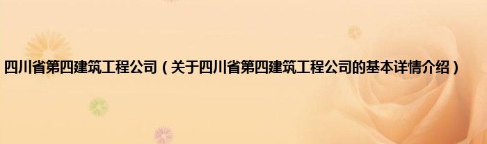 本文关于四川省第四建筑工程公司的基本详情介绍就讲解完毕,希望对大家有所帮助。