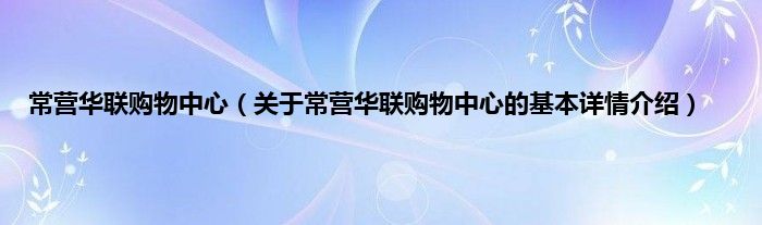 本文关于常营华联购物中心的基本详情介绍就讲解完毕,希望对大家有所帮助。