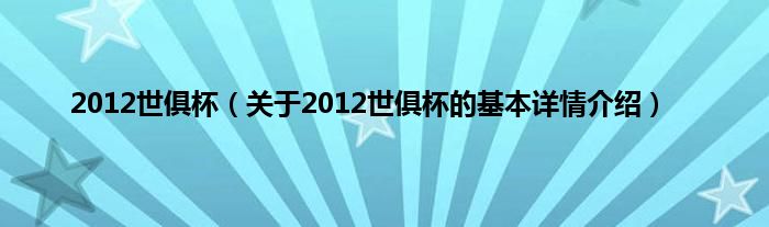 本文关于2012世俱杯的基本详情介绍就讲解完毕,希望对大家有所帮助。