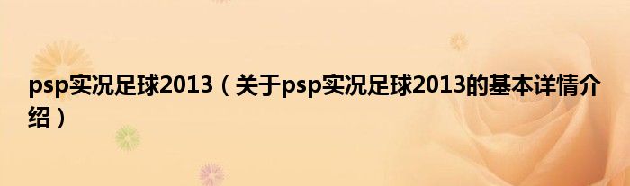 本文关于psp实况足球2013的基本详情介绍就讲解完毕,希望对大家有所帮助。