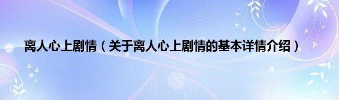 离人心上剧情(关于离人心上剧情的基本详情介绍)