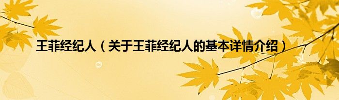 本文关于王菲经纪人的基本详情介绍就讲解完毕,希望对大家有所帮助。