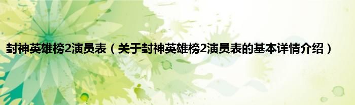 本文关于封神英雄榜2演员表的基本详情介绍就讲解完毕,希望对大家有所帮助。