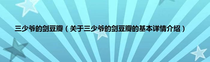 本文关于三少爷的剑豆瓣的基本详情介绍就讲解完毕,希望对大家有所帮助。