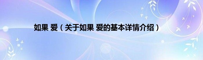 本文关于如果 爱的基本详情介绍就讲解完毕,希望对大家有所帮助。