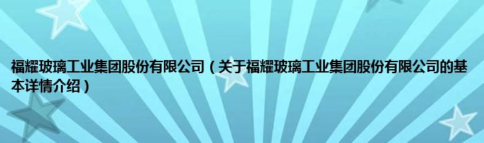 本文关于福耀玻璃工业集团股份有限公司的基本详情介绍就讲解完毕,希望对大家有所帮助。