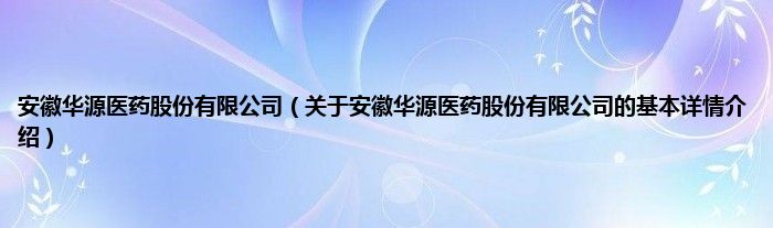 本文关于安徽华源医药股份有限公司的基本详情介绍就讲解完毕,希望对大家有所帮助。