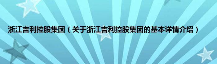 本文关于浙江吉利控股集团的基本详情介绍就讲解完毕,希望对大家有所帮助。