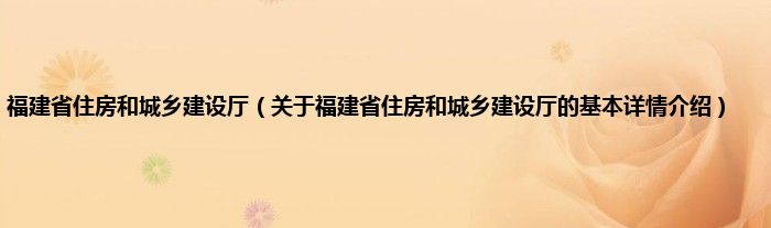 本文关于福建省住房和城乡建设厅的基本详情介绍就讲解完毕,希望对大家有所帮助。