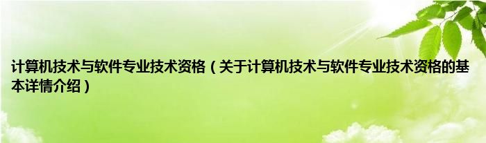 本文关于计算机技术与软件专业技术资格的基本详情介绍就讲解完毕,希望对大家有所帮助。