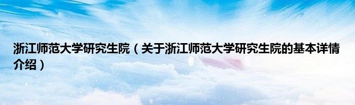 本文关于浙江师范大学研究生院的基本详情介绍就讲解完毕,希望对大家有所帮助。