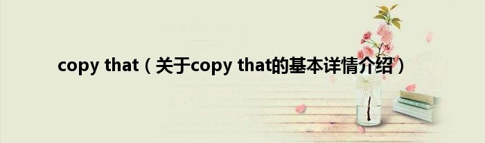 copy that(关于copy that的基本详情介绍)
