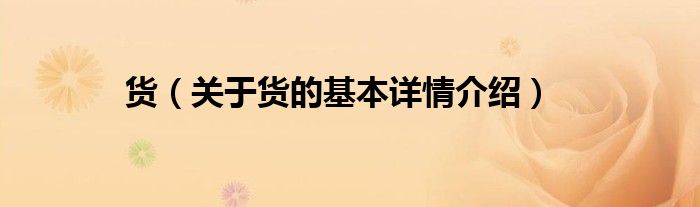 本文关于货的基本详情介绍就讲解完毕,希望对大家有所帮助。