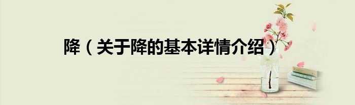 大家好我是小蝌蚪,降,关于降的基本详情介绍很多人还不知道,那么现在让我们一起来看看吧!