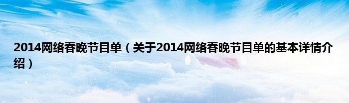 本文关于2014网络春晚节目单的基本详情介绍就讲解完毕,希望对大家有所帮助。