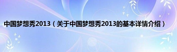 本文关于中国梦想秀2013的基本详情介绍就讲解完毕,希望对大家有所帮助。