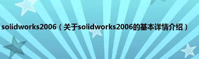 本文关于solidworks2006的基本详情介绍就讲解完毕,希望对大家有所帮助。