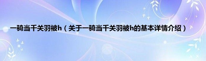 本文关于一骑当千关羽被h的基本详情介绍就讲解完毕,希望对大家有所帮助。
